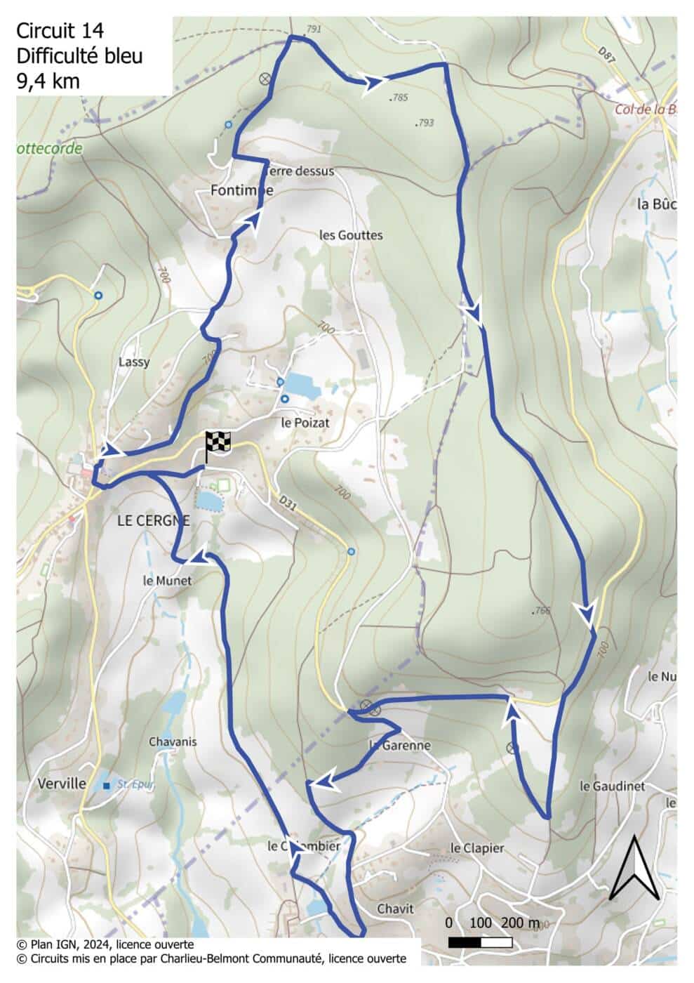 Itinéraire VTT : circuit 14 bleu, base Le Cergne